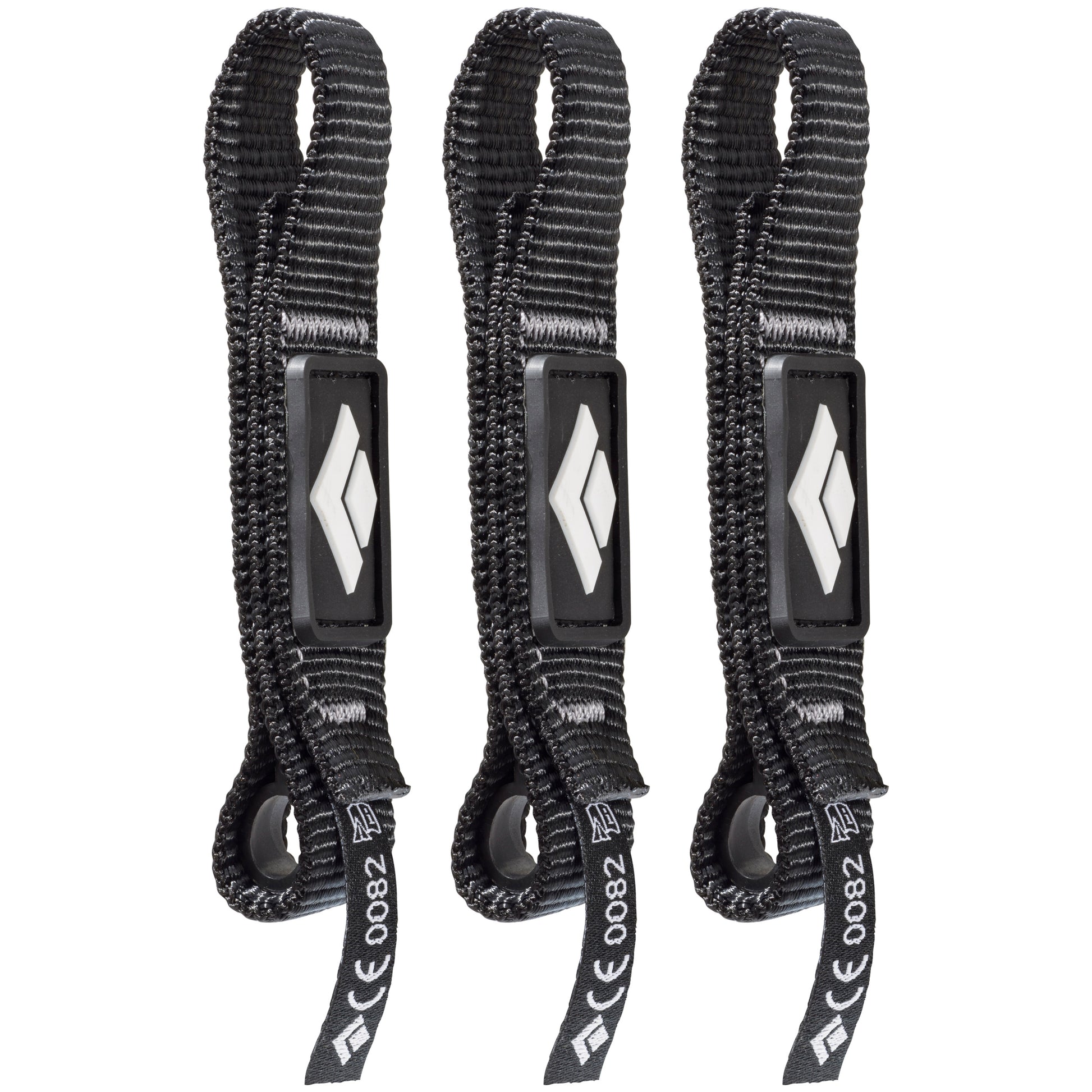 Long favored by our sport climbing ambassadors and found swinging on testpiece routes the world over, the Black Diamond Dogbone is our pro-grade dogbone that features a burly variwidth polyester construction and BD icon. The beefy width is easy to grab when working out the moves, and a Straitjacket rubber insert keeps the bottom carabiner secured for easy clipping. 3-Pack of the Diamond Dogbone 12cm.