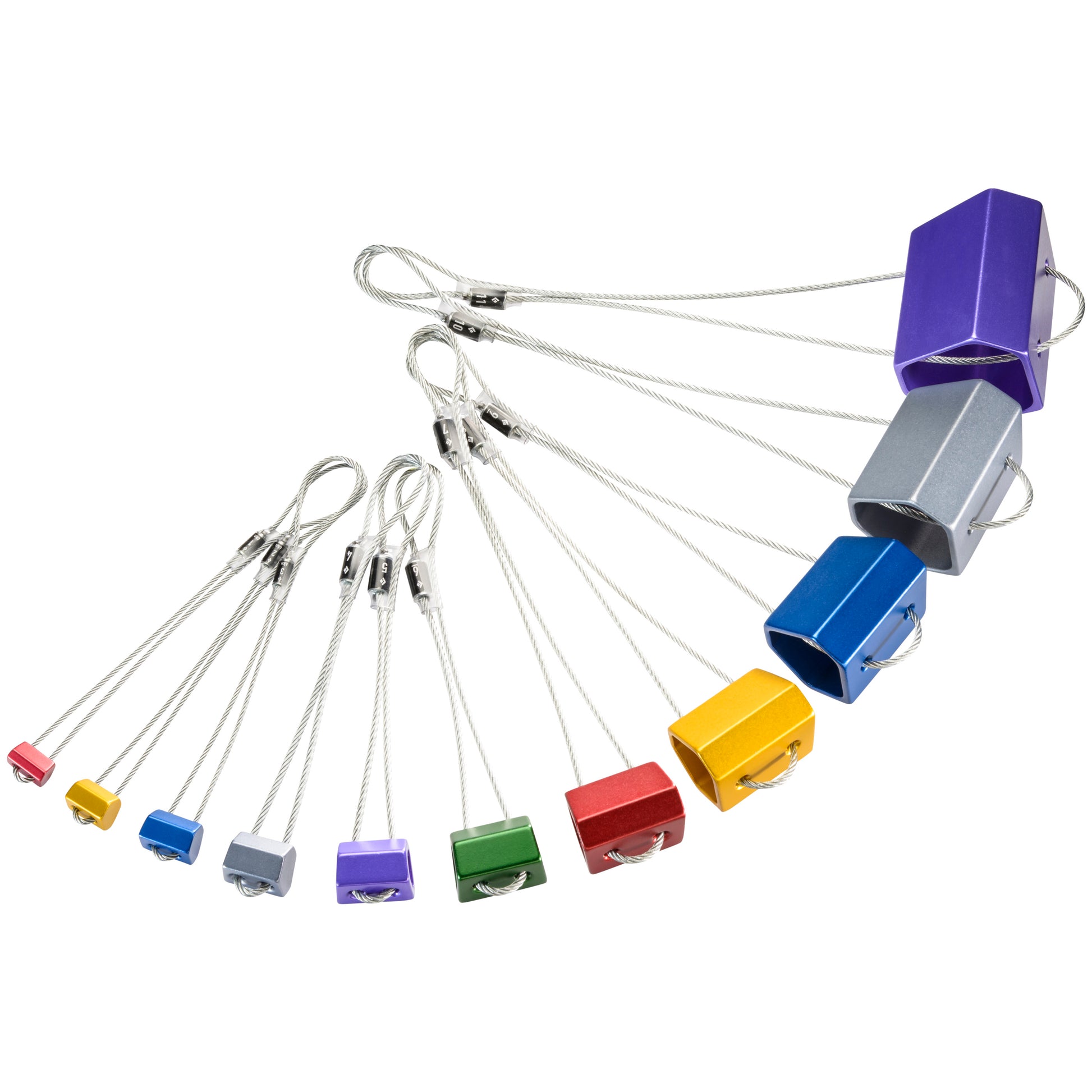 Classic, simple, lightweight, functional pro, Black Diamond Hexes shine in rapidly widening cracks where cams might walk out. With a subtly asymmetrical cross-section, flat sides and slight end-wise taper, they offer three different widths when turned on their axes and another when placed end-wise. Easy to rack and place in bottlenecks, Hexes come equipped with durable, galvanized steel cables.